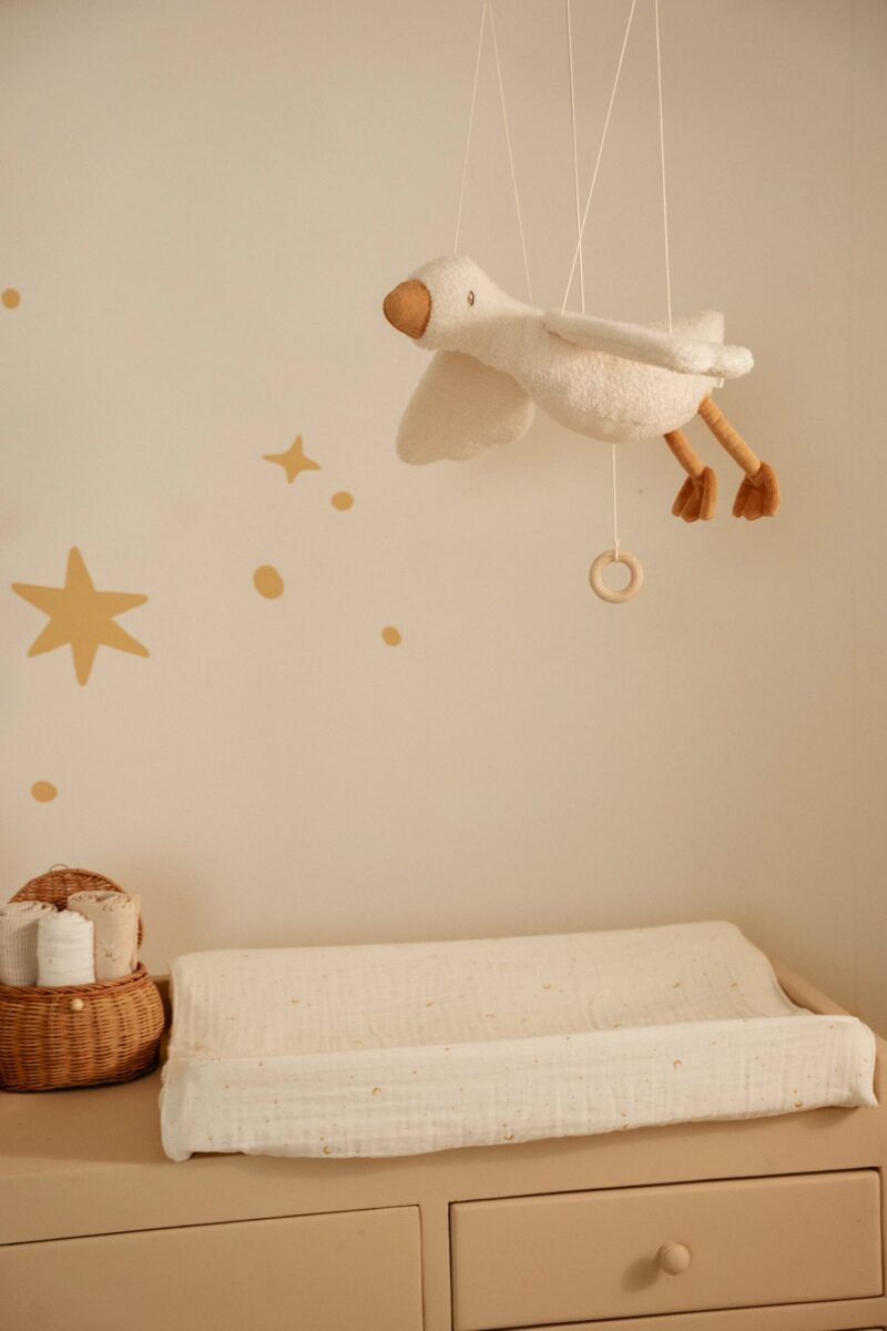 Lase Little Dutch´i väikesel hanekesel toas graatsiliselt hõljuda ja tuua lastetuppa rahu ja imetlust. Oma elegantse kuju ja pehme välimusega näib ta õhus lendlevat luues unenäolise õhkkonna. Kerget ja õhulist disaini iseloomustab mänguline ja rahulik ilme, mis sobitub vaevata igasse lastetuppa. Lihtne üles riputada – see äratab kujutlusvõime ja loob sooja, rahuliku atmosfääri. Lase oma väiksel unistajal triivida väikese hanekese tiibade all.