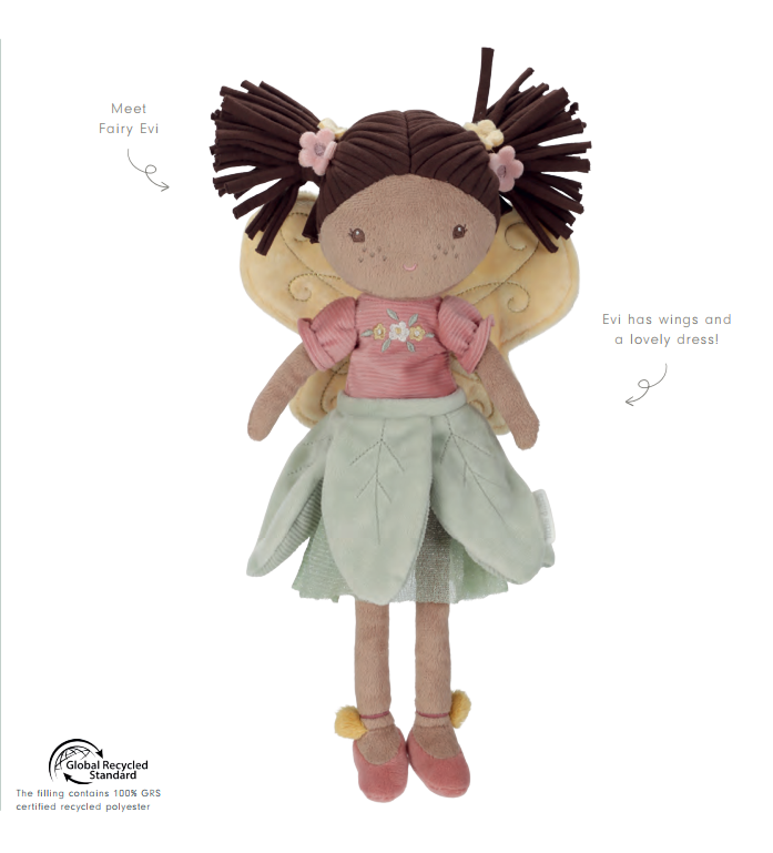 Saage tuttavaks armsa haldja Eviga – pehme ja kaunis tiibadega haldjanukk Little Dutch´i Fairy Garden kollektsioonist.  Ta viib sind seiklema lilleaeda, kus õitsevad värvilised lilled ja sumisevad mesilased. Haldjas Evi on kaisutamiseks ideaalne ning sobib hästi väikestesse kätesse. Tema armas nägu ja kaunid detailid muudavad ta toredaks mängukaaslaseks ja stiilseks kaunistuseks lastetoas. Luba oma lapsel nautida seiklusi koos haldjas Eviga!