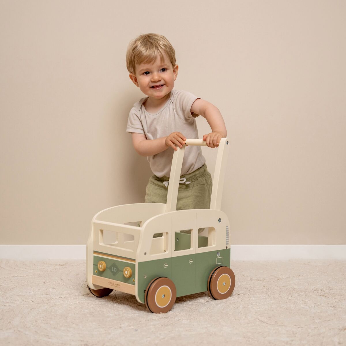 Ja läksime! Seikle tubades ringi selle vinge Little Dutch´i retro bussi stiilis kõndimiskäruga. Samm-sammult õpite kõndima ja see jalutuskäru on suurepärane vahend selle saavutamiseks. Nii, et käivitage mootor ja kujutage ette, et olete selle ülilaheda bussi juht.