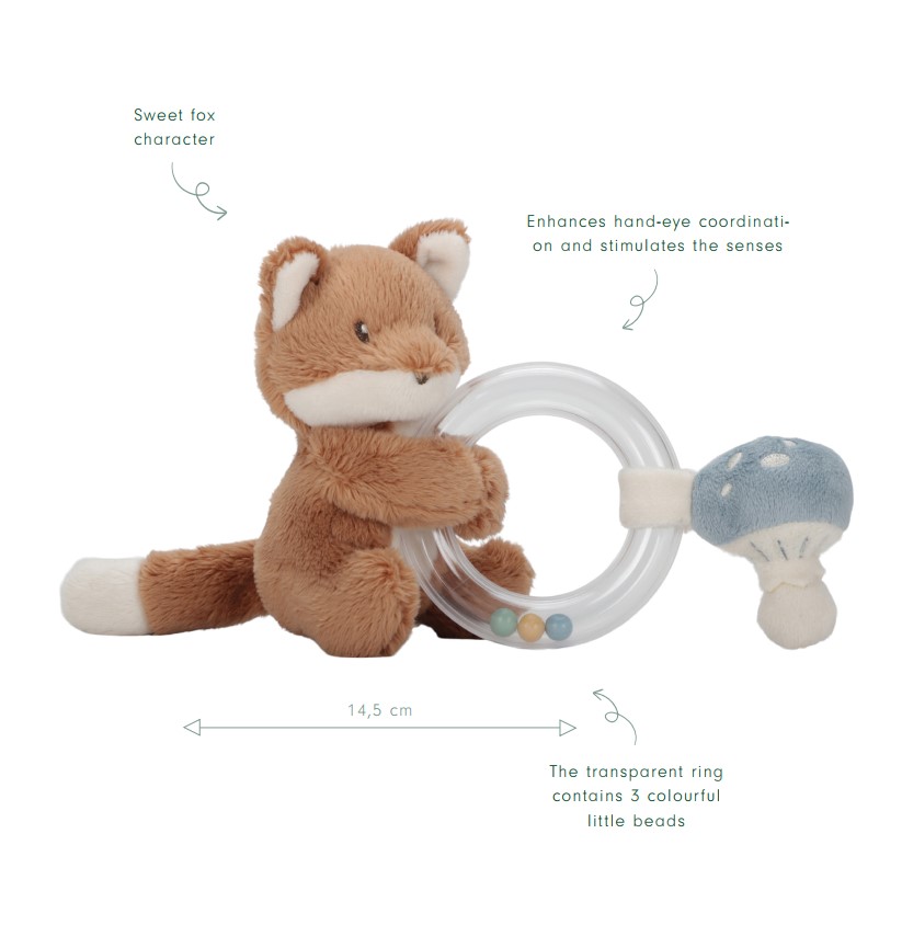 Haara, keeruta ja raputa! Beebid kindlasti armuvad sellesse Little Dutch´i mänguasja. See armas rebasega kõristi äratab teie pisikese uudishimu. Rebane oma pehme karva ja väikese sabaga kutsub sind mängima. Läbipaistev rõngas on täidetud 3 väikese helmega, mis kõrisevad, kui teie laps sellega mängib. See mänguasi arendab lapse käe-silma koordinatsiooni ja ergutab meeli.