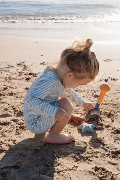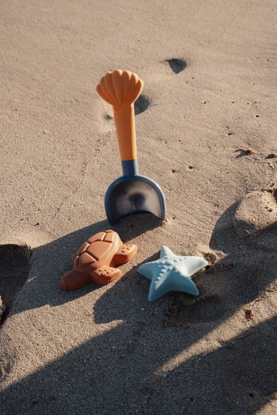 Otsid ideaalset komplekti rannapäevaks? See Little Dutch´i 3-osaline sinine rannakomplekt Ocean World täiendab iga liivaseikluse. Komplekt sisaldab mugavat labidat ning kahte liivavormi – meritähe ja kilpkonna kujul – mis sobivad ideaalselt liivalosside ehitamiseks või mereloomade vormimiseks. Tänu kompaktsele suurusele mahub see hõlpsasti rannakotti ning sobib suurepäraselt ka liivakasti või kaasa võtmiseks. Komplekt on pakendatud võrkkotti koos riputussildiga ning sobib lastele alates 18. elukuust