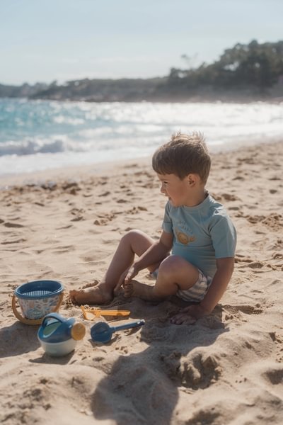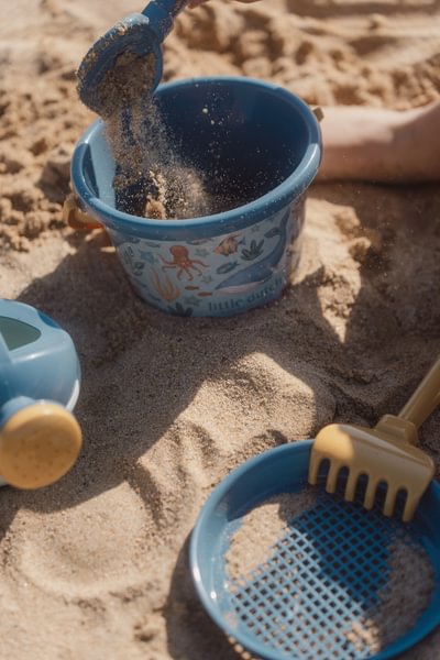 Mängimine liivaga muutub veelgi lõbusamaks selle Little Dutch´i 5-osalise sinise rannamänguasjade komplektiga Ocean World. Komplekt sisaldab tugevat ämbrit (kõrgus 9,5 cm), armsat kastmiskannu, kühvlit, sõela ja reha – kõik pehmetes sinistes toonides, mere-teemaliste detailidega, mis ergutavad kujutlusvõimet. Valmistatud vastupidavast materjalist, nii et teie väike saab ehitada liivalosse, luua erinevaid vorme ja seigelda korduvalt. Komplekt on pakendatud mugavasse võrkkotti ja sobib lastele alates 18 kuu vanusest.