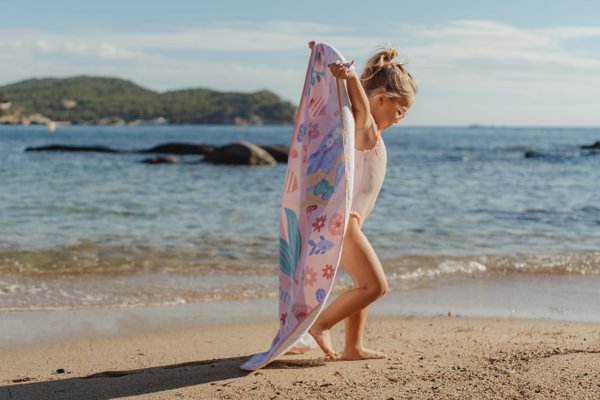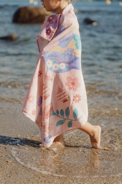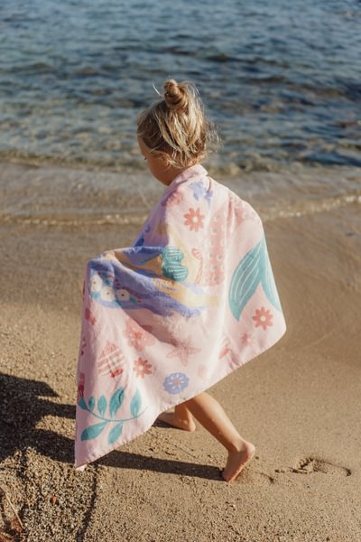 Pärast päeva täis lõbusat sulistamist on see pehme roosa Little Dutch´i rannarätik Dreamy Mermaid just see, mida sinu pisike vajab. Valmistatud 100% orgaanilisest puuvillast ja trükitud froteekangast, tundub see rätik nahal imeliselt pehme ja mugav. Mõõtudega 60 × 120 cm sobib see suurepäraselt nii sisse mähkimiseks kui ka peale pikali heitmiseks. Rõõmsate merineitside, mänguliste kalade ja merikarpidega armas muster hoiab veealuse unistuse elus ka pärast ujumist. Olgu rannas, basseini ääres või aias – see rätik lisab igasse hetke veidi maagiat. Kombineeri sobiva ujumiskostüümi või mütsiga, et luua terviklik suvine komplekt, mis on täis stiili, mugavust ja võlu.