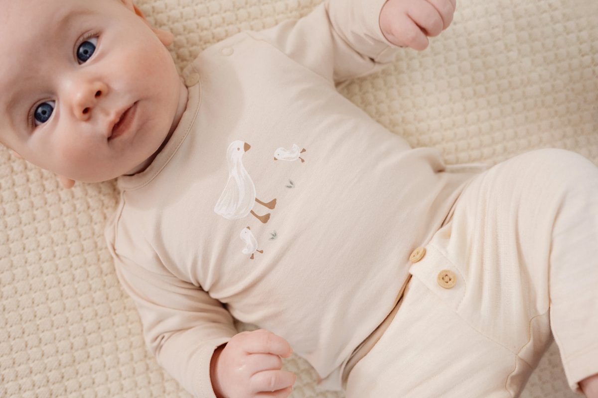 See pikkade varrukatega T-särk armsa Little Goose’i trükiga rinnal on mugav ja stiilne valik sinu pisikesele. Kaks praktilist nööpi kaeluse juures teevad selga panemise ja ära võtmise eriti lihtsaks. Valmistatud pehmest orgaanilisest puuvillast, mis on õrn beebi tundliku naha vastu ja samal ajal ka keskkonnasõbralik valik. Tänu Oeko-Tex sertifikaadile võid kindel olla, et sinu laps avastab maailma turvaliste ja jätkusuutlike materjalidega. Sobitage kokku sama kollektsiooni pükstega, et luua ühtne stiil.