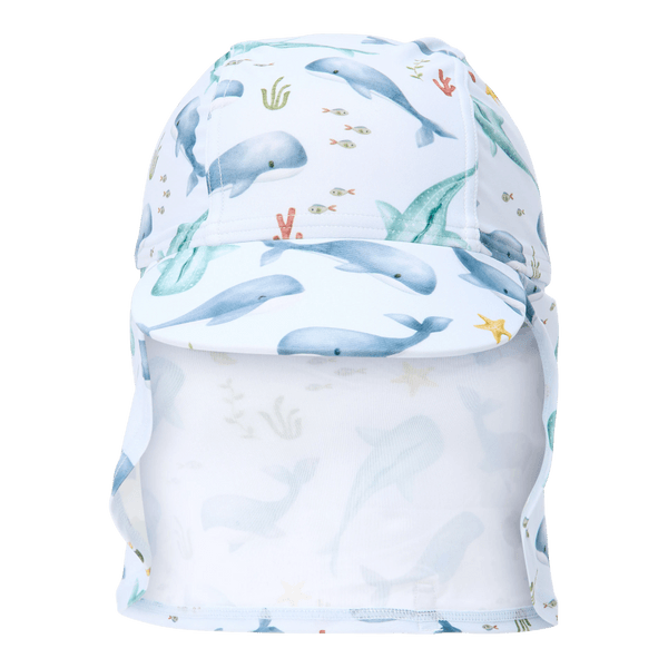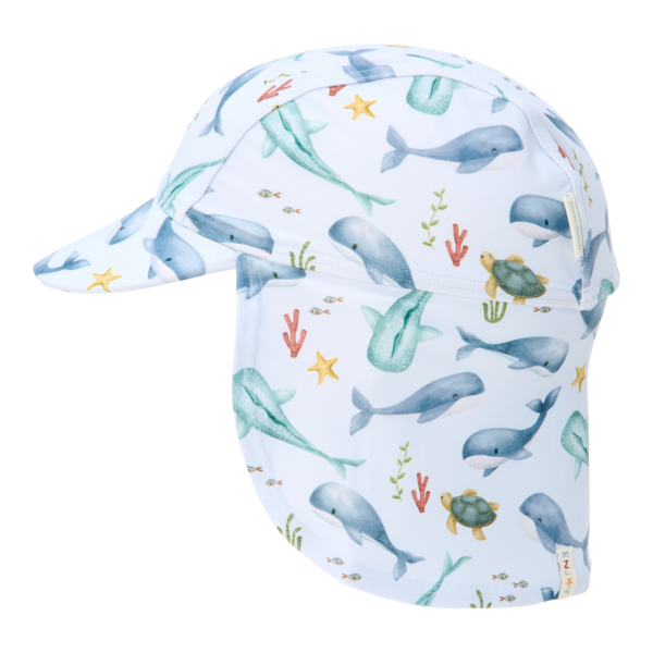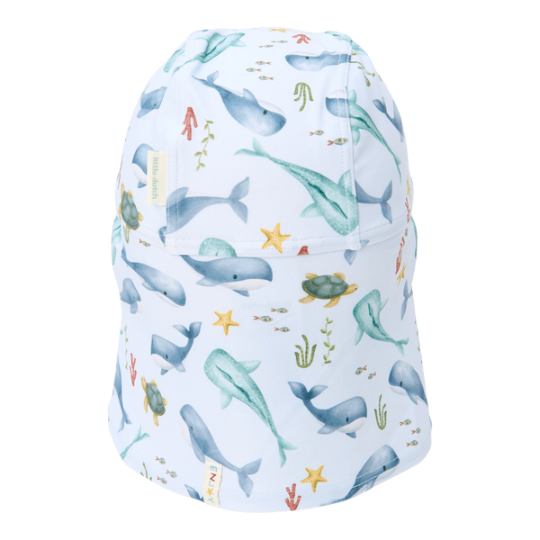 Naudi päikest stiilselt ja turvaliselt! See Little Dutch´i ujumismüts pakub lisaks vahvale välimusele ka suurepärast kaitset päikese eest – ideaalne valik väikestele rannaseiklejatele. Helesinine disain armsate vaaladega, kes ujuvad rahulikult läbi vee, toob lapsele rõõmu ja sobitub kaunilt sama kollektsiooni ujumisriiete ja ujumissussidega. Kaelalapp kaitseb tundlikku kuklaosa, samas kui eesmine nokk varjab silmi ja nägu otsese päikese eest. Müts on valmistatud kiiresti kuivavast kangast, mis sobib suurepäraselt nii rannamängudeks kui basseinis sulistamiseks.